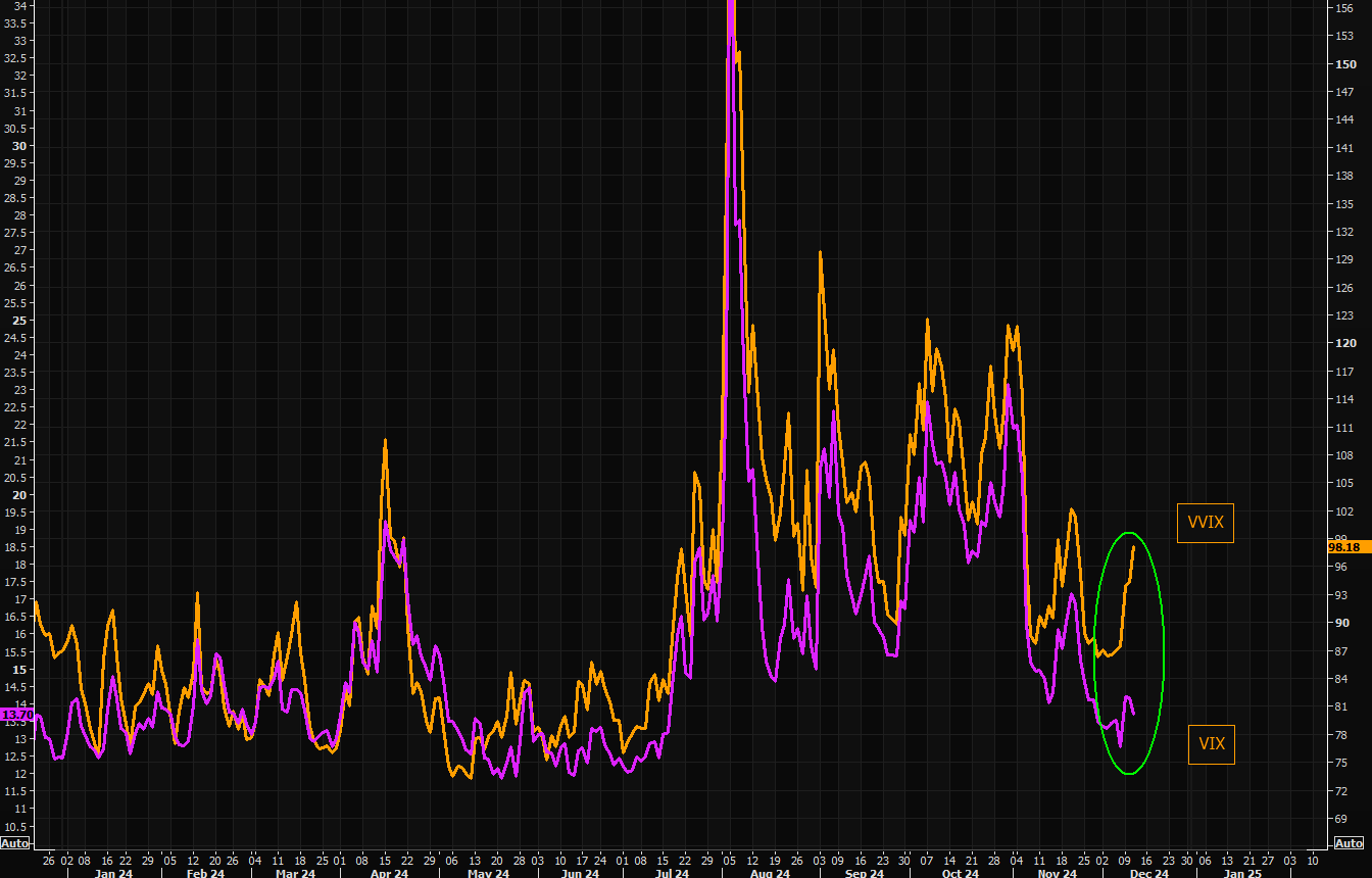 VVIX continues moving sharply higher, now trading with a huge gap vs VIX. Watch this closely...