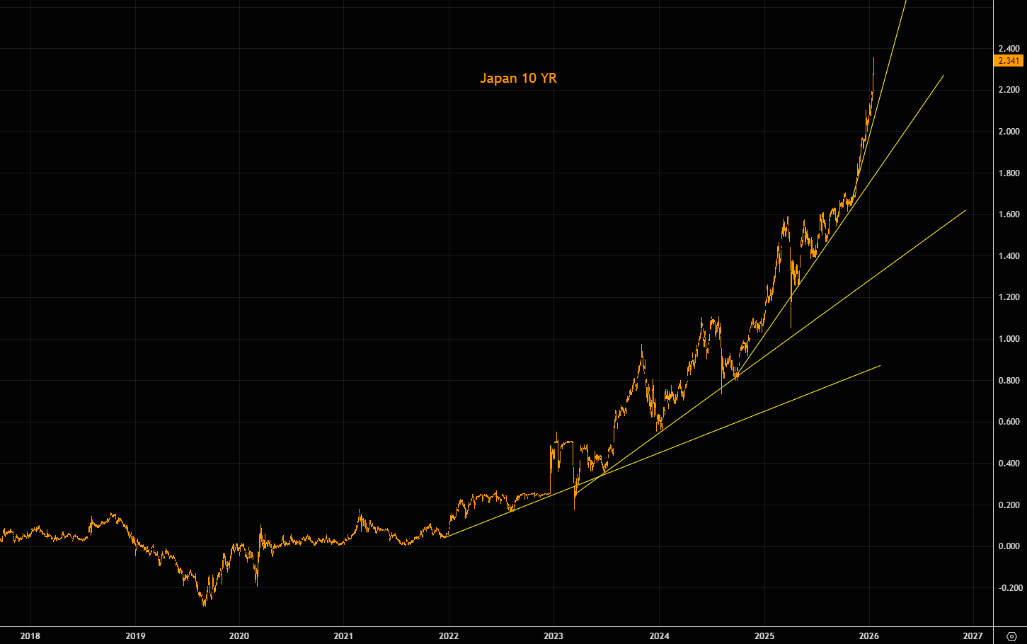 Japan 10 year trend line going beyond steep. This is truly extreme, and matters beyond Japan.