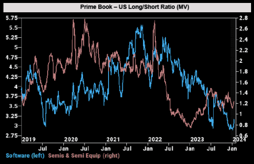 GS reports largest "info tech" hedge fund buying in almost 3 months, mainly in software and semi equipment. Looking at positioning levels this buying has potential to grow (a lot).