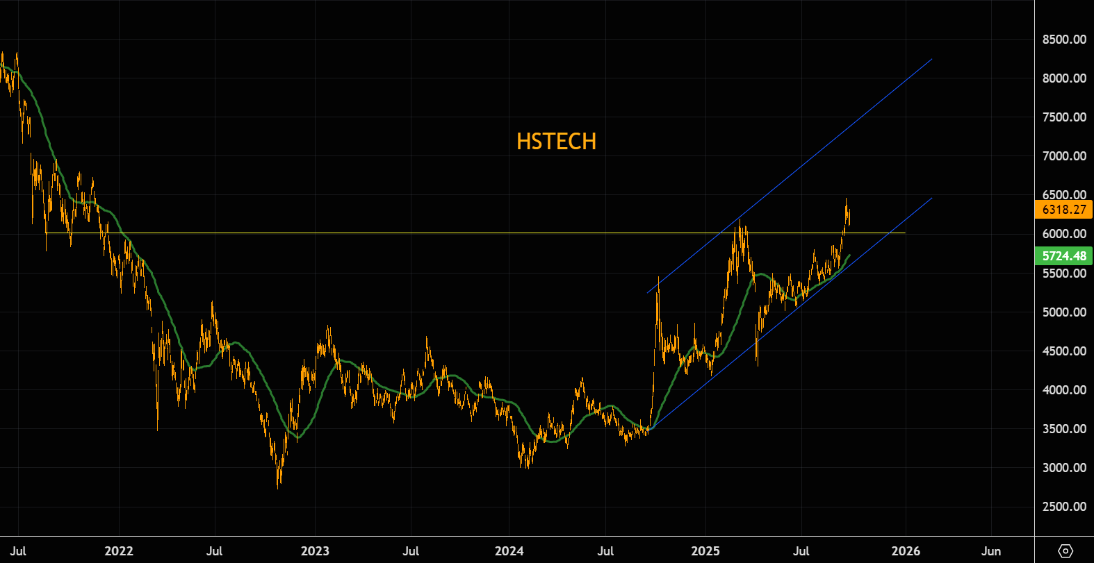 HSTECH bouncing right on the break out support area. 50 day sloping very "healthy".