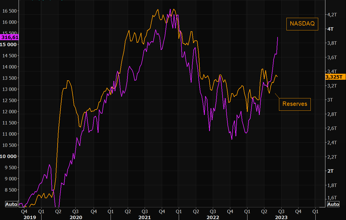 The gap between NASDAQ and Fed reserves is very wide as the AI trade leaves everything behind, liquidity included. Impossible is possible?