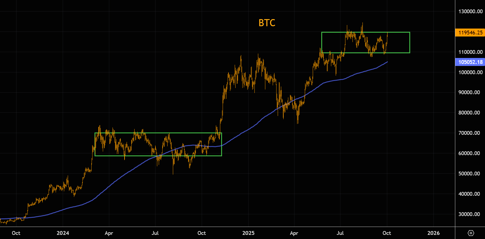 Bitcoin remains stuck inside the range that has been in place for months. For now we are seeing people change money only. A decisive close above the range would get us excited.