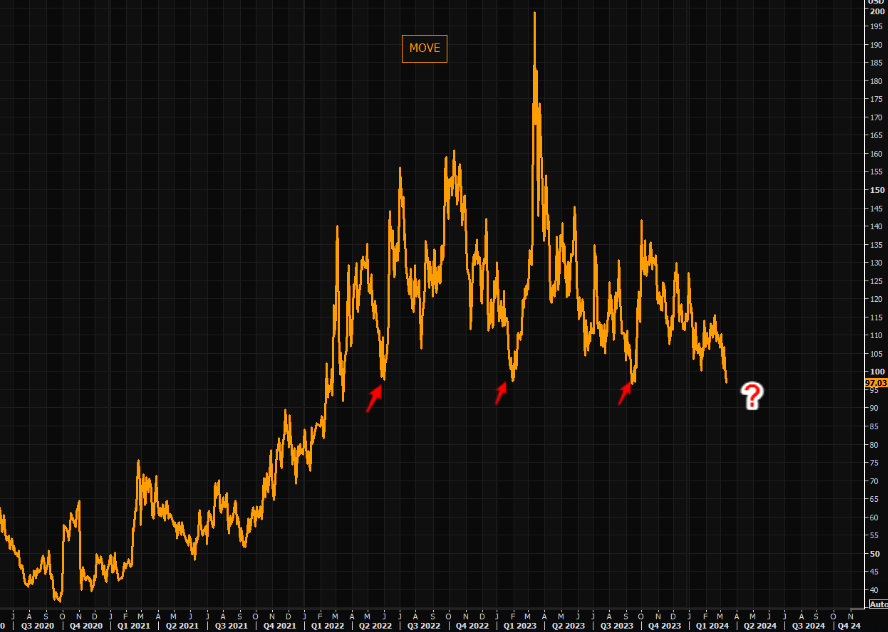 Bond volatility moving sharply lower