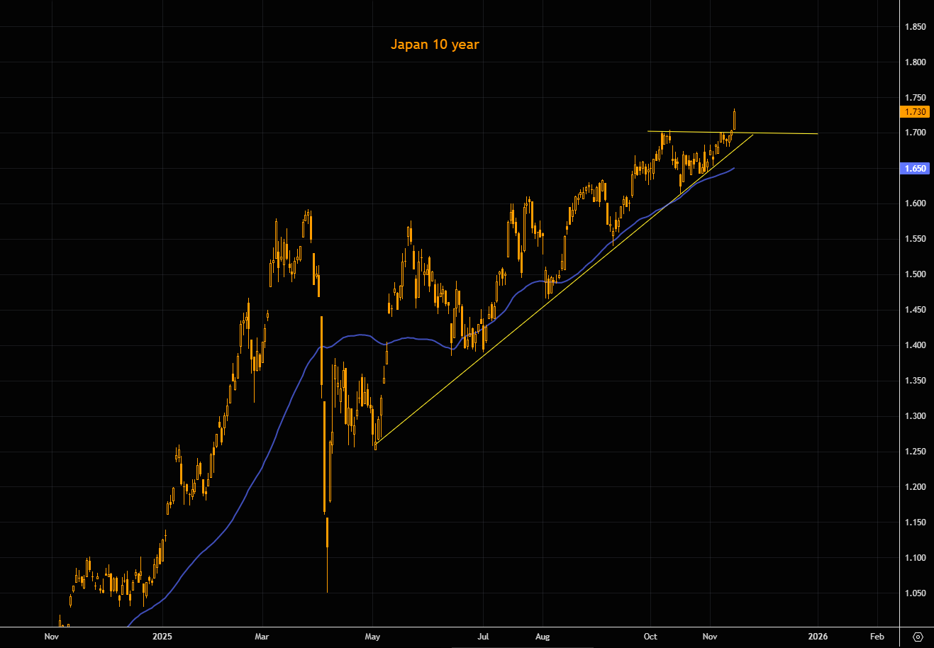 Japan 10 year with a textbook break out. Chart 2 shows the Japanese 10 year just printed the highest levels since mid 2008.