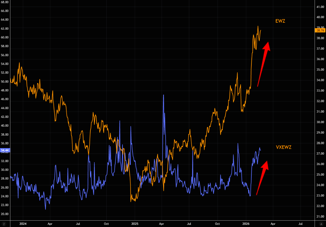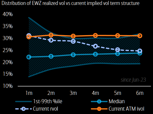 Underexposed investors have been forced to chase Brazil longs via calls, leading to a surge in both price and volatility.