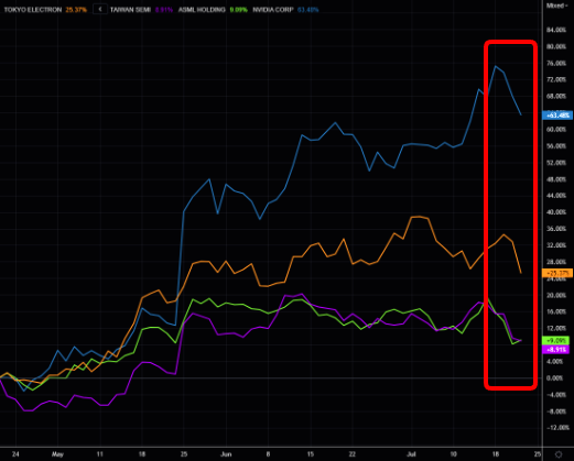 Is this the beginning of something bigger or not, but global chip stocks had a poor week this week. Note that most names are trading at the same levels we traded at almost a month ago. Is the perceived AI bull stronger than the actual one?