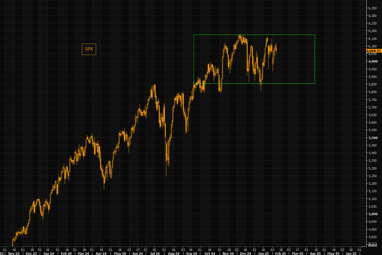 SPX continues chopping around. There is no new trend, so treat this as a mostly mean reverting market, with a lot of headline risk, magnifying the chop.