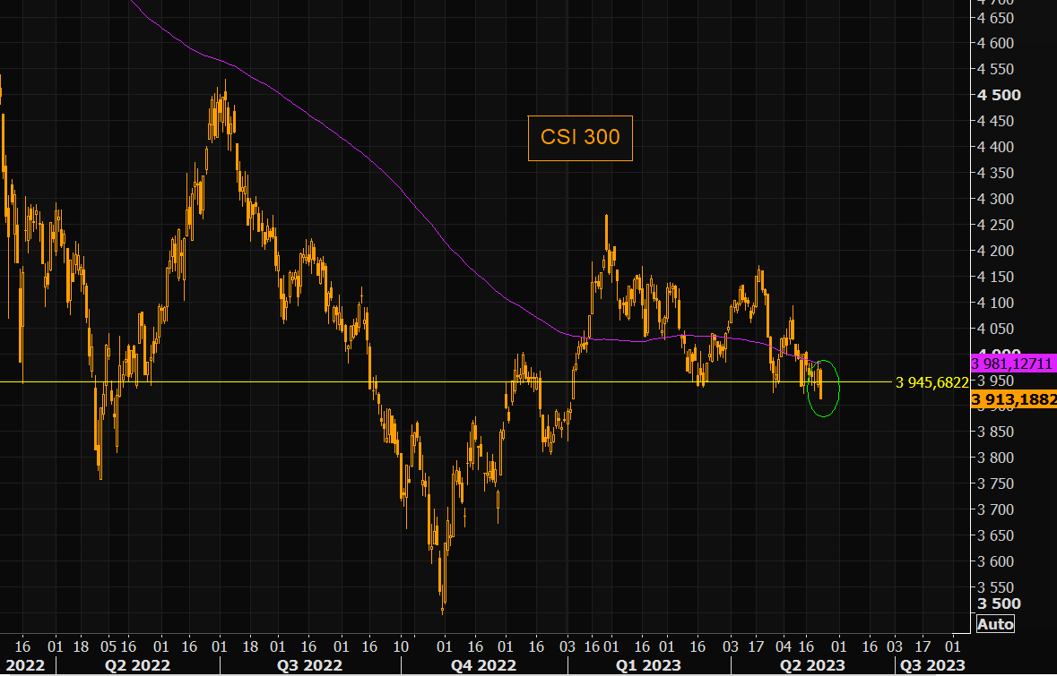 The CSI 300 closed at the lowest levels since the up gap candle on Jan 2 this year. Note we are "well" below the 200 day, that is negatively sloping as well. The China reopening from hell getting traction soon?