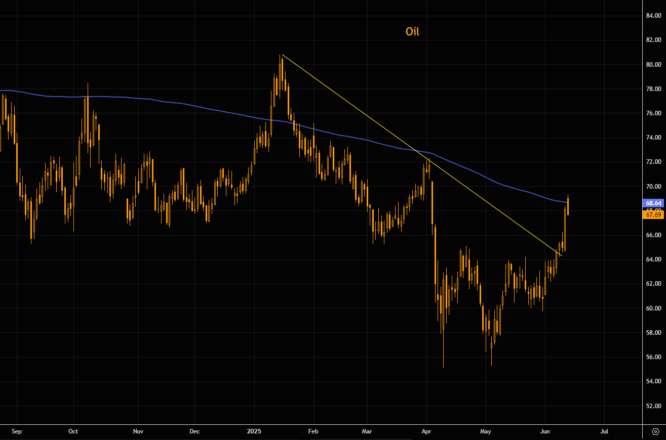 Oil took out the negative trend line during yesterday's squeeze, but note we are hitting the 200 day moving average as of writing.