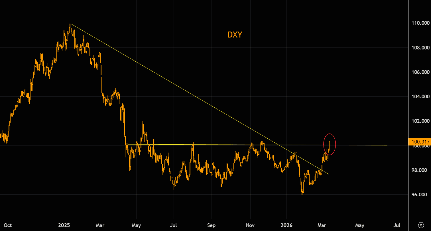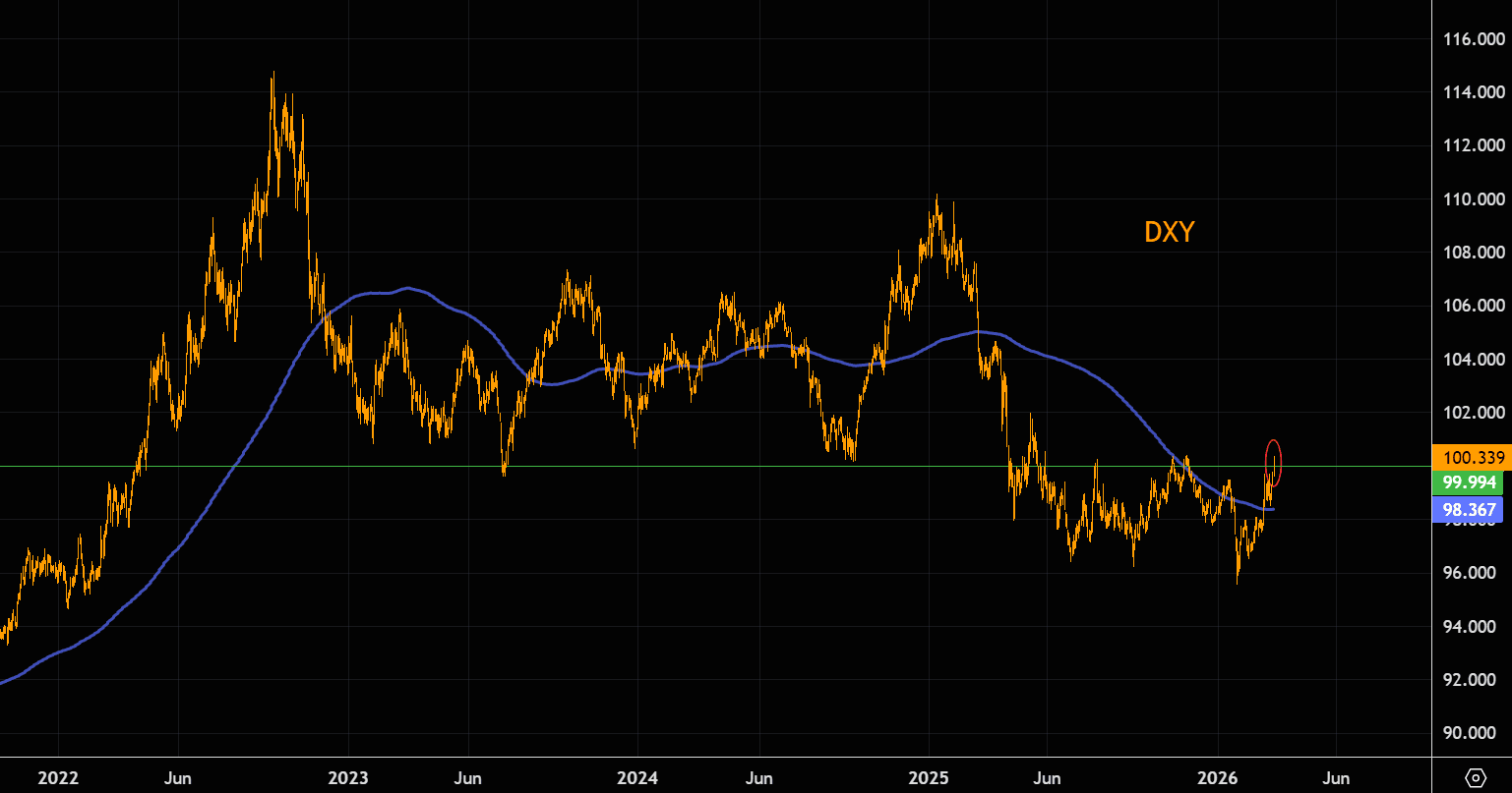 100 is huge in the DXY. Note we are now well above the 200 day MA.