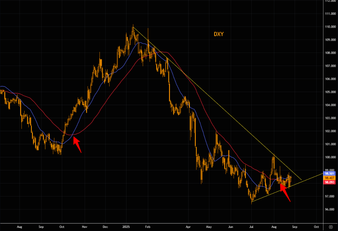 The DXY is getting increasingly trapped inside a dynamic formation where complex psychology has been developing. We should be seeing a break out soon. Note the 21/50 day cross. Last time we had a similar cross was back in mid October, and the dollar went very well bid over the coming months.