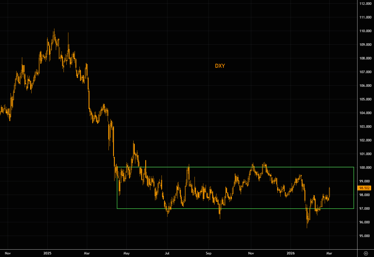 …long live the dollar. Despite the flood of bearish narratives, the DXY has been stuck in the same range since last April. There’s no real trend, and trying to force breakout trades in either direction has been an expensive game.