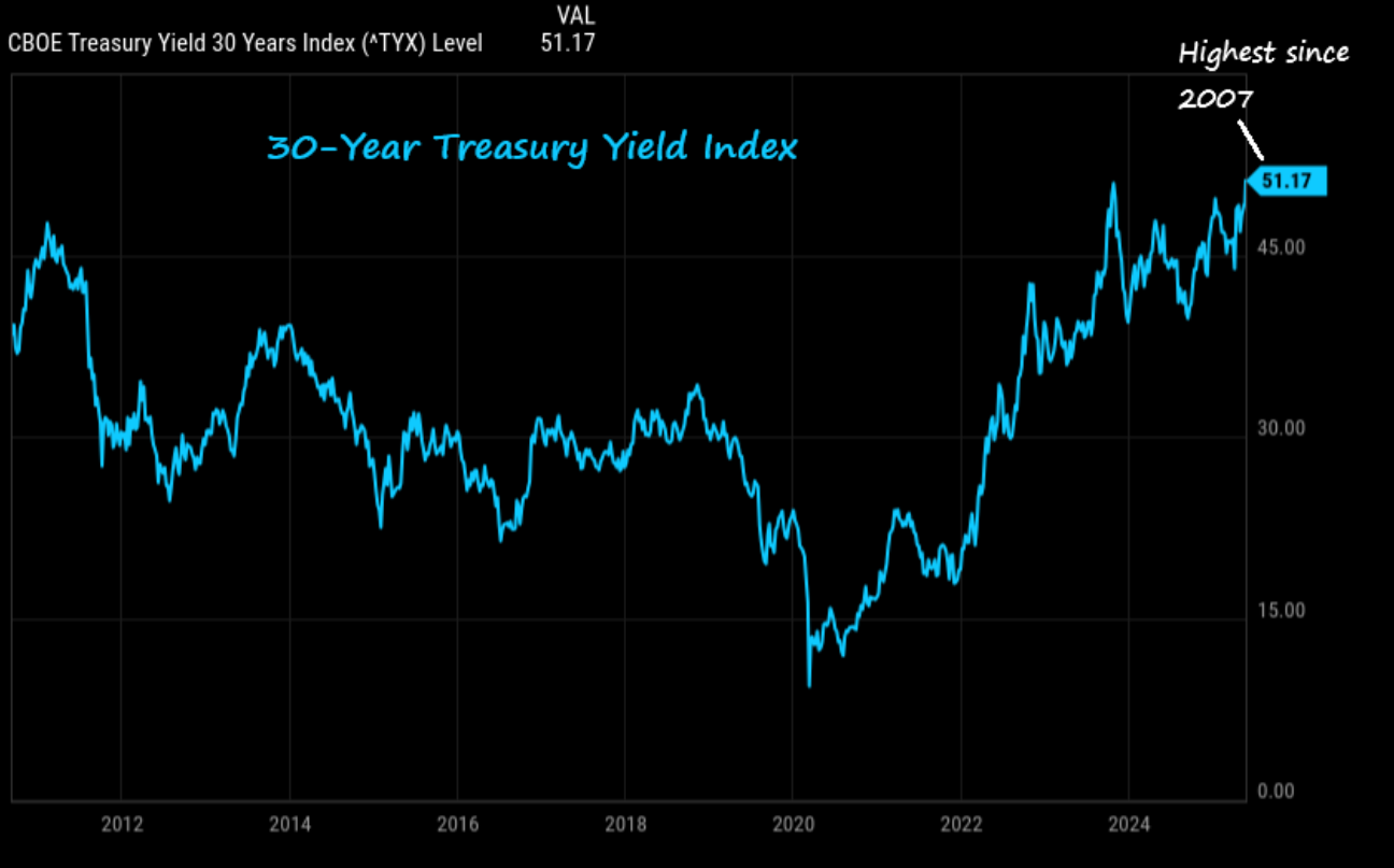 The 30-year Treasury yield hit its highest level since 2007 this week.
