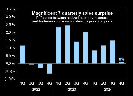 If it's not the end of an era - it's at least the end of a long strong streak. This marks the first quarter with no positive sales surprise for the Mag 7 since 2022.