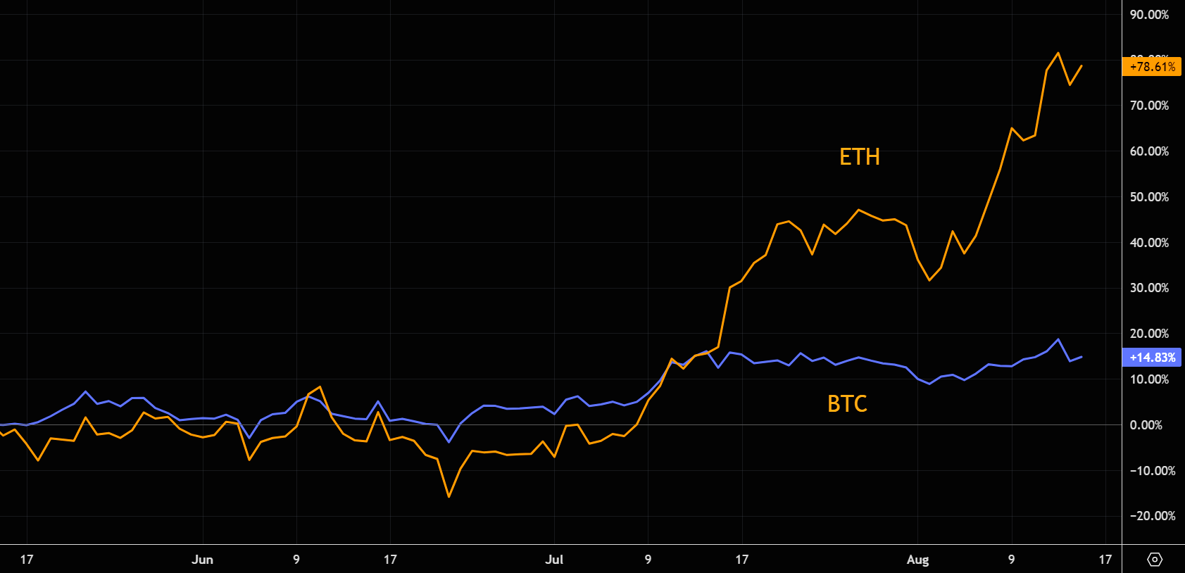 ETH is all the rage...leaving boring big brother BTC way behind.