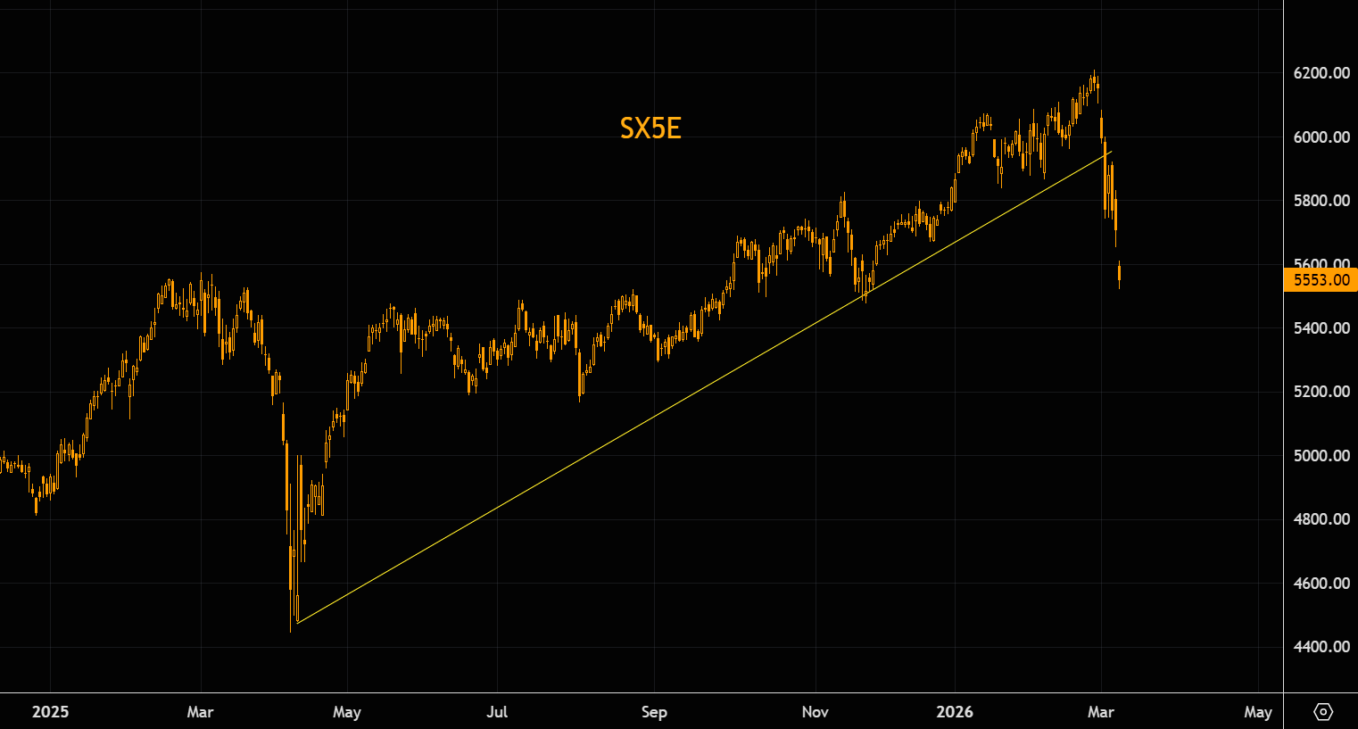 While European politicians are busy calculating how many paper straws we need to offset the emissions from Israel striking Iranian oil infrastructure, investors are capitulating en masse. Europe is back to doing what it does best; disappointing. Technical picture just awful.