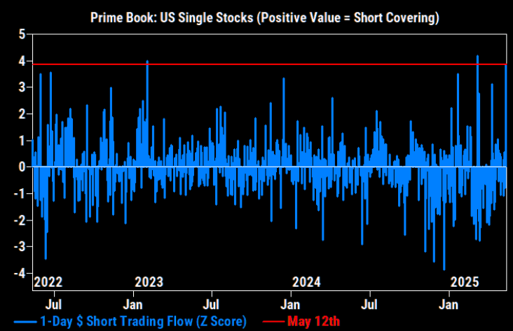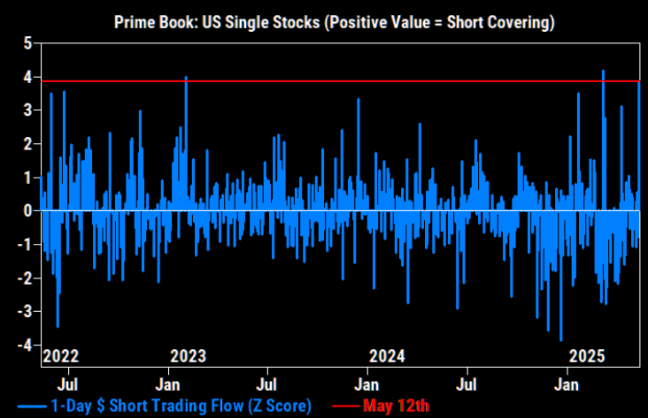 Yesterday's notional short covering in US single stocks collectively was the largest since Mar 7th and ranks in the 99th percentile on a 5-year lookback.