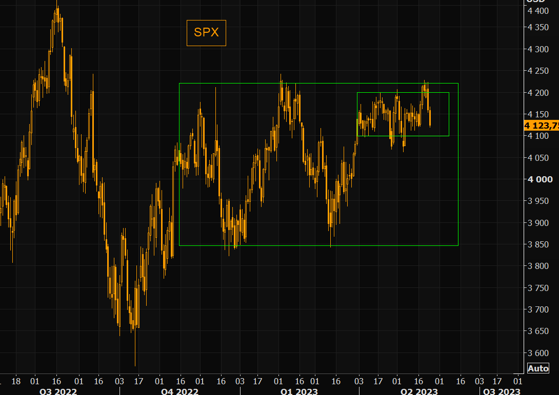 Everybody got excited about the break out in SPX, got sucked in, just to realize that the "fat and flat" narrative remains intact. The big range is intact, and for the short term, we are approaching the first supports around 4100...