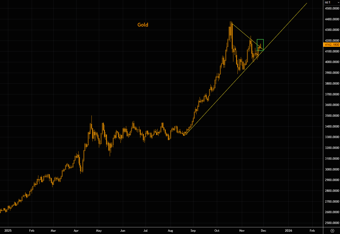 Gold attempting to break out of the triangle like formation. Let's see how this develops.