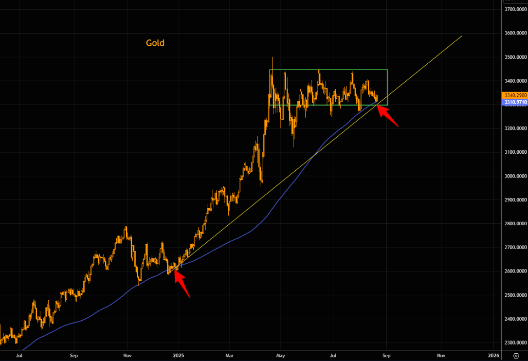 Gold continues to trade inside the boring range that has been in place for months. Note we are down to the 100 day moving average. Last time we bounced off the 100 day, things took off...