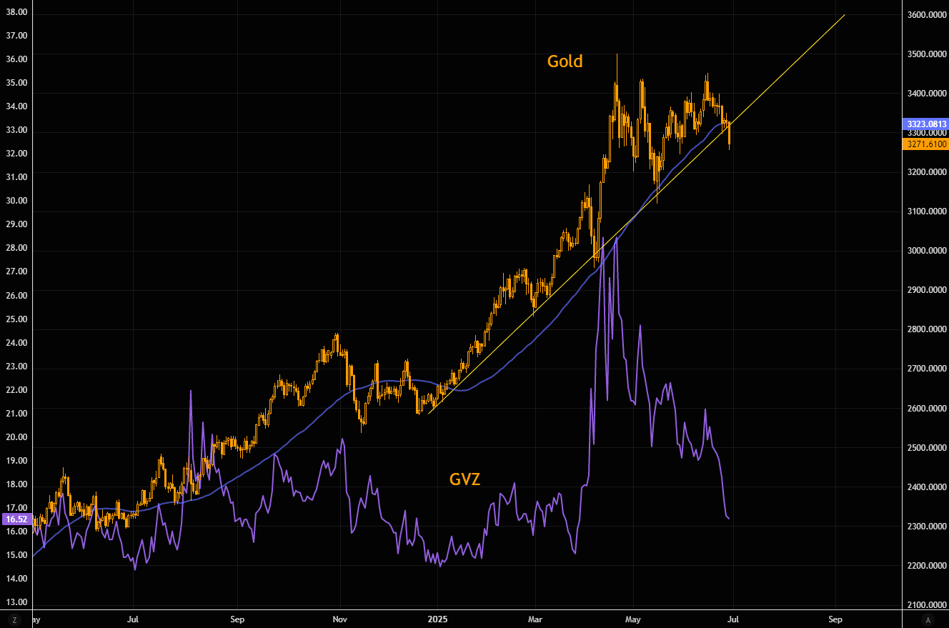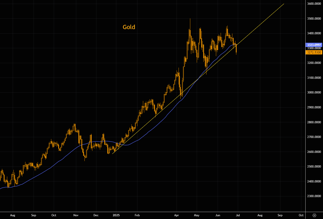 Haven't seen gold trade below the trend line that has been in place so far in 2025... nor have we seen gold trade this much below the 50 day since late 2024.