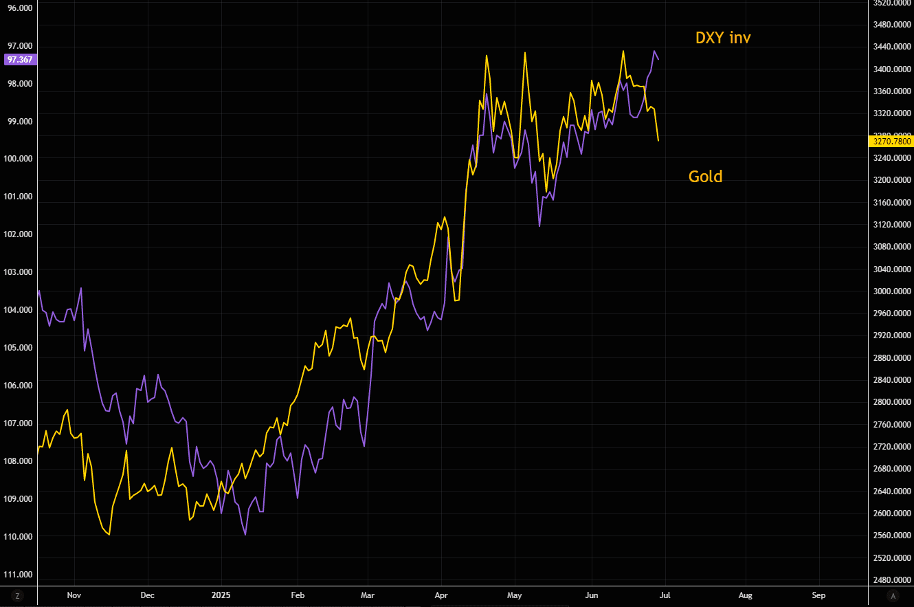 Despite all the negative dollar takes, the DXY remains trading not far from late April levels. If gold can't catch bids with the DXY here, what happens should the dollar catch some bids eventually?
