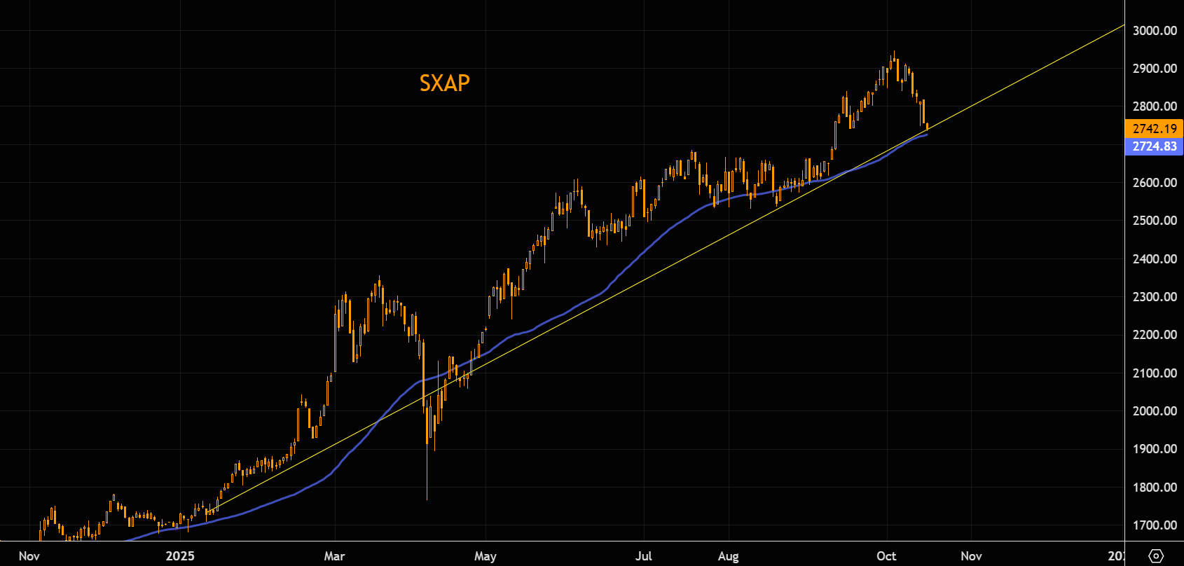 Recent weakness in European defense seems positioning-driven according to JPM, with their defense basket’s long/short ratio near the 80th percentile since 2018, possibly serving as the funding leg for the luxury rally. Over the weekend, a cease-fire was reached in the Middle East, while Trump signaled renewed focus on ending the war in Ukraine. SXPARO (aero/defense index) is down to the 50 day and the trend line from early this year, must hold.