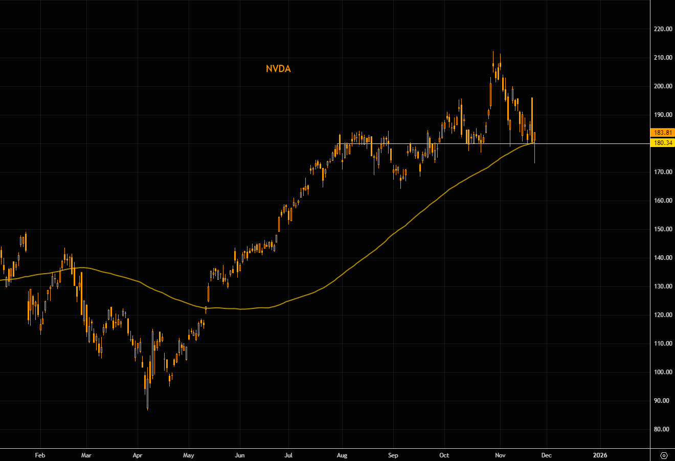 We have been pointing out the huge $180 area in NVDA. We are seeing a big hammer candle today, right on the 100 day moving average.