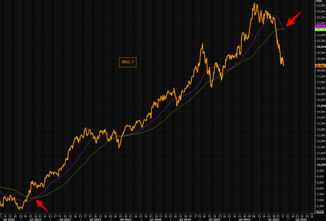Mag went Lag not long ago. The bull started with the big bullish 50/100 day cross in early 2023. Note that the negative 50/100 cross is about to kick in. More lag for the Mags?