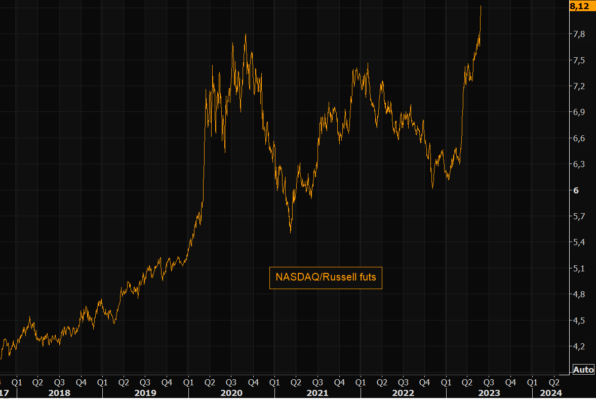 NASDAQ vs Russell futures ratio printing the daily new all time high...