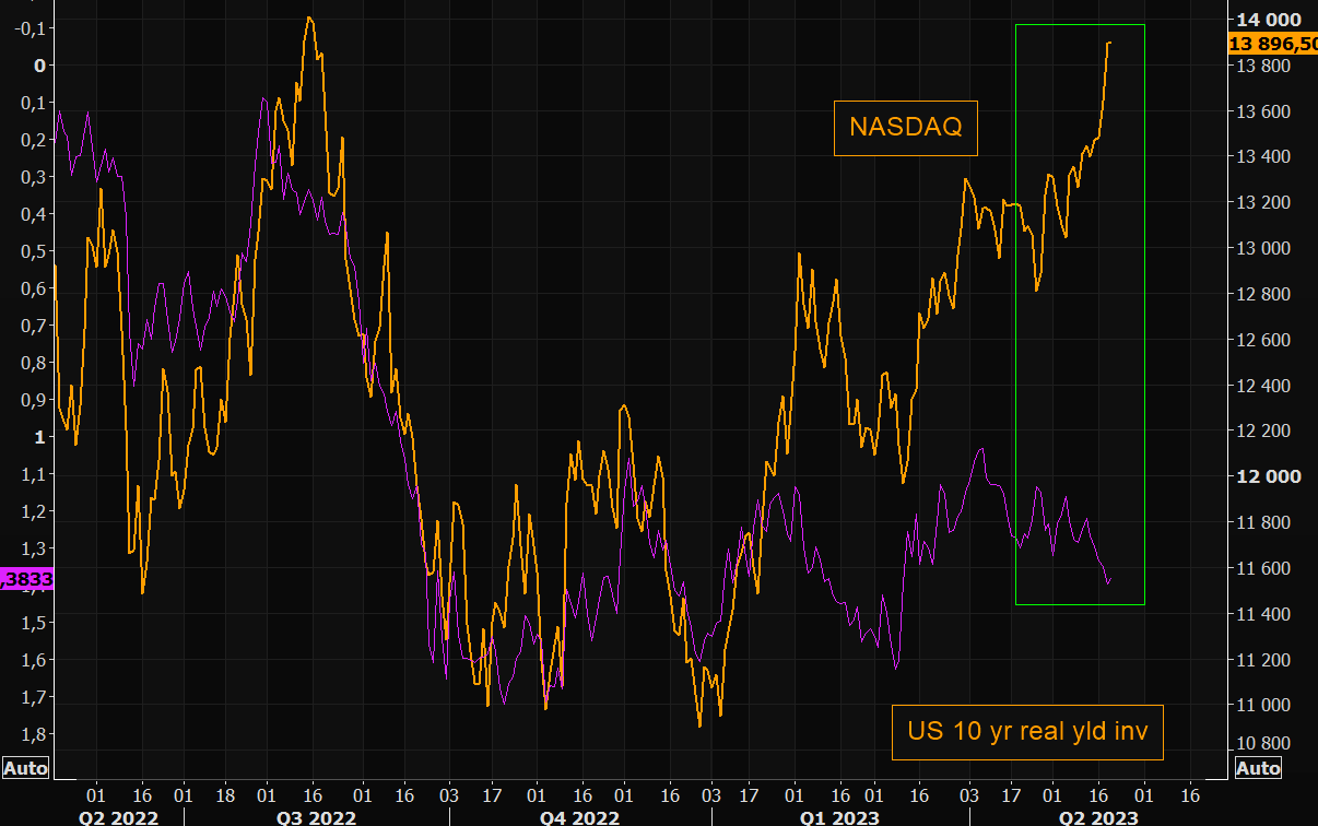 NASDAQ vs the US 10 year real yield (inverted) gap is getting very wide here. Watch this closely as momentum chasing PMs tend to get carried away...