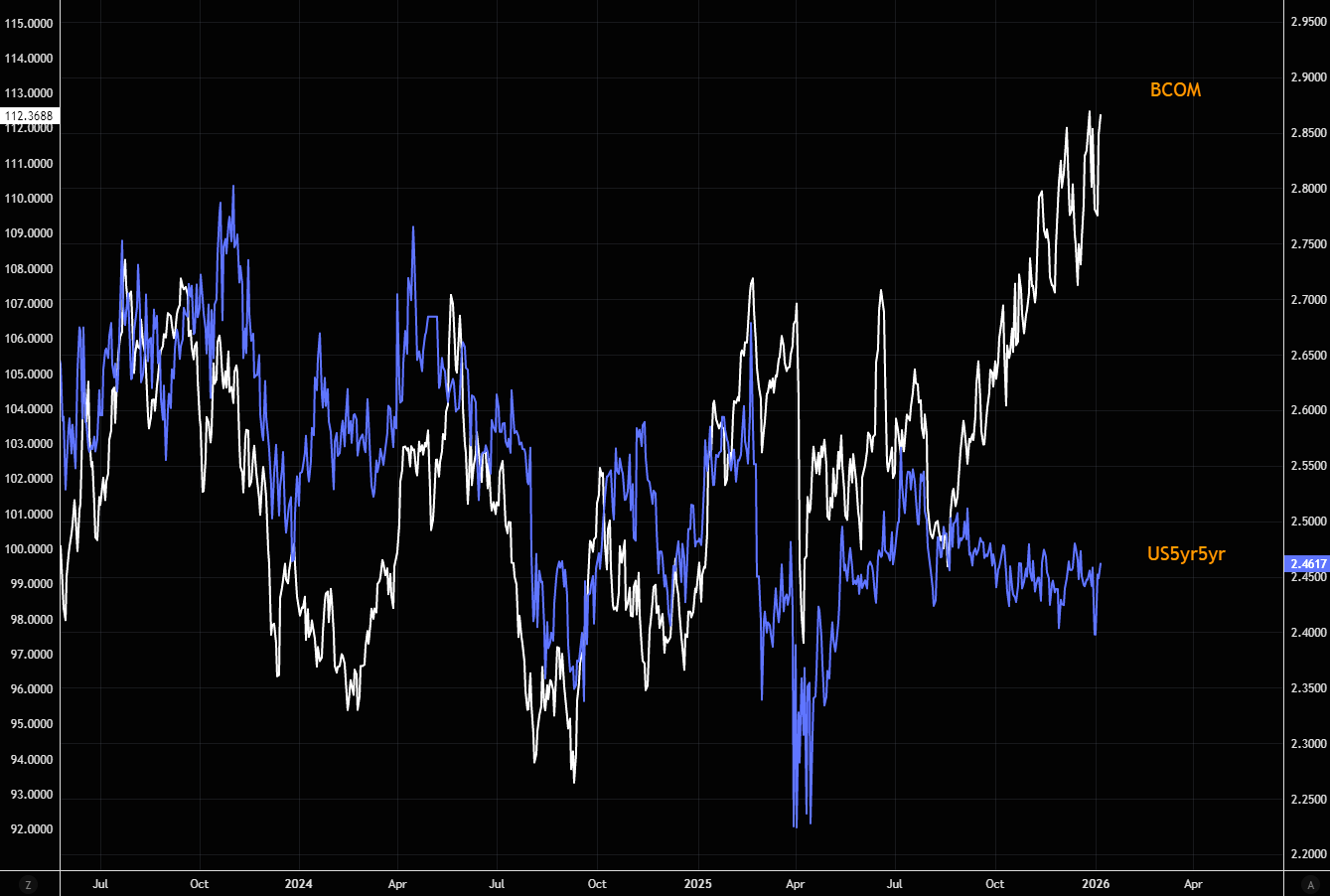 ....unless you need commodities. Are we in the early stages of reflation? As Goldman's Privorotsky writes: "...either points to a broad dollar devaluation or a rapid re-acceleration in the global economy." Chart 1 shows BCOM vs US 5yr5yr. Chart 2 shows the BCOM vs the DXY. The dollar has done very little since April, while the BCOM has surged.