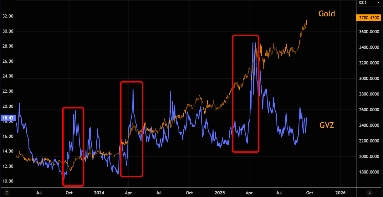 Gold volatility moved higher yesterday, but note gold volatility tends to go into overdrive when "real" gold panic kicks in. Call spreads remain very attractive expressing further upside in gold.