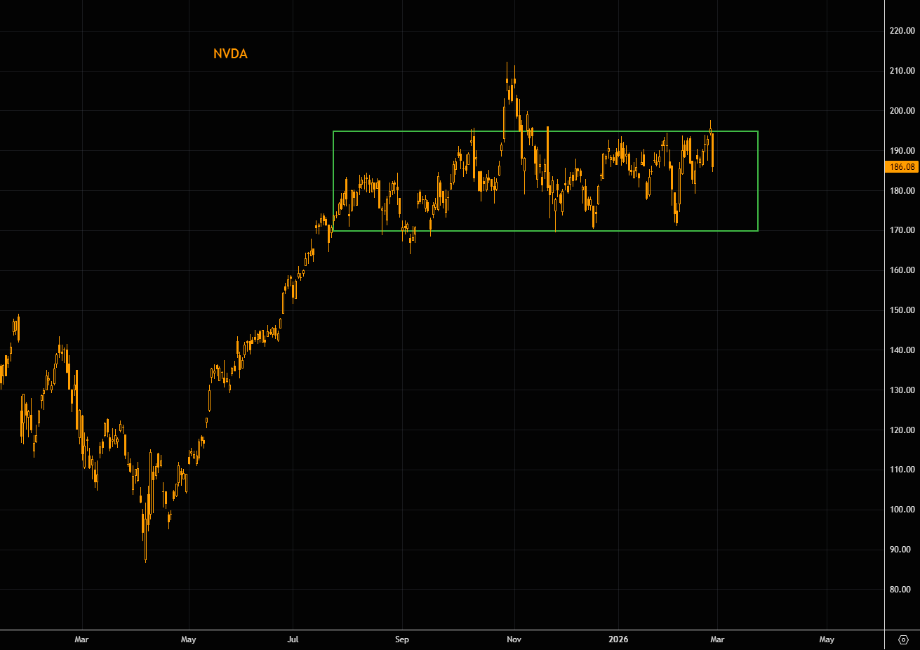 NVDA remains trading inside the range that has been in place since last July. We aren't getting excited until we get a proper break out, either direction. In our view this is dead money for longer...
