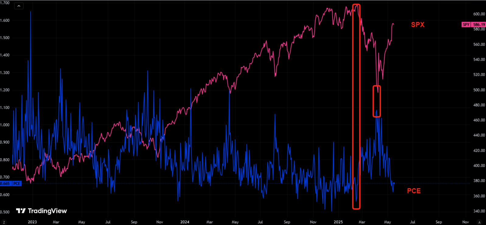 The crowd tends to love puts at local market lows (April), and hate puts at local market highs. Have not seen this much "put hate" since SPX traded at ATHs.