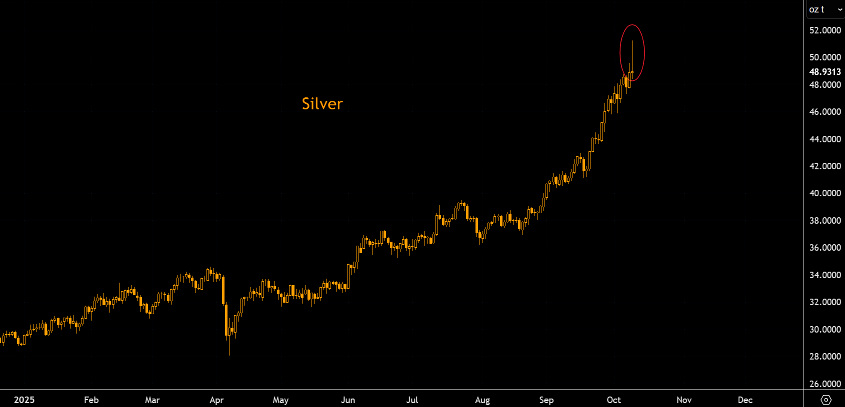 Silver putting in an absolutely huge shooting star candle. As always we need a confirmation, but this one is very big so look closely. Note we saw the inverse candle at April lows. A lot of people have been sucked into chasing the melt up without really knowing why... Our silver and gold volatility warning note from earlier today here.