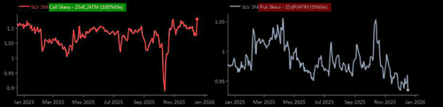 Silver 3M call skew 100%tile, put skew 1%tile. Upside panic is extreme.