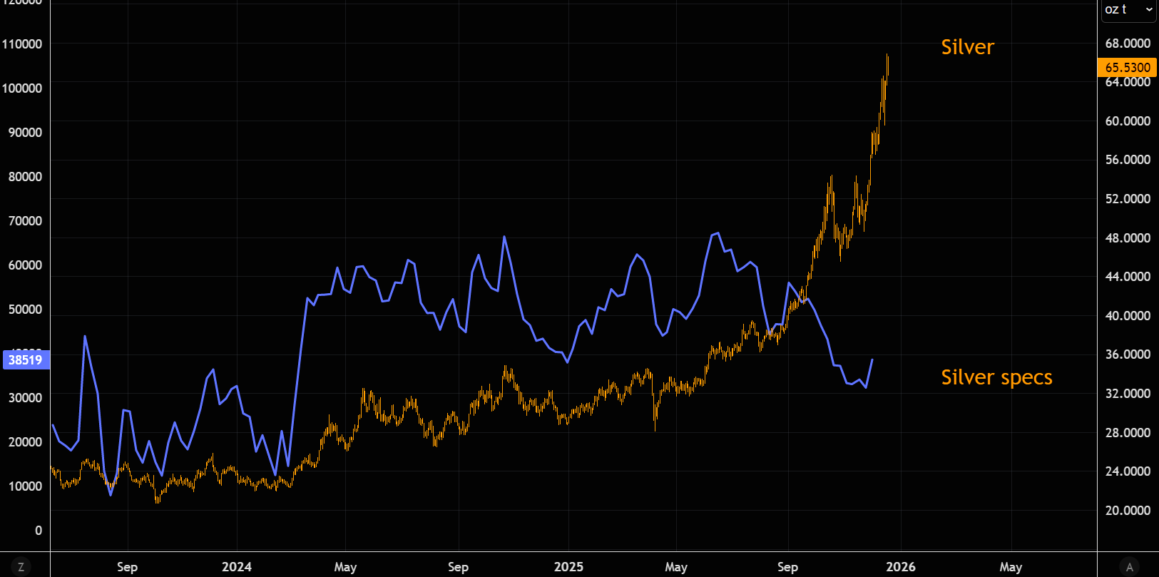 Good luck explaining to the boss why you missed one of the most spectacular silver squeezes, especially when your job is to trade silver. We’re still waiting for the full update on silver speculators, but the latest data (as of Dec 4) suggests they clearly missed the squeeze.