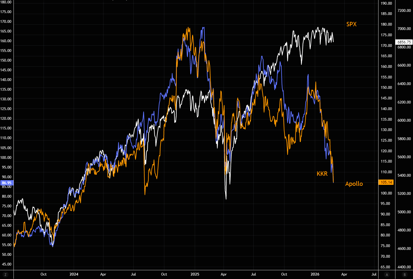 Or do we see spillover effects kick in soon? SPX vs Apollo and KKR.