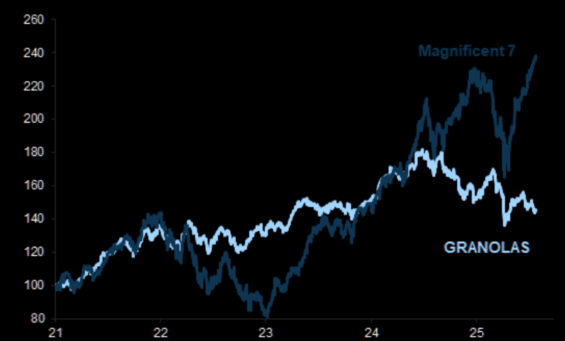 In Europe, the largest stocks have underperformed. GRANOLAS is a list of companies including: GSK, Roche, ASML, Nestle, Novartis, Novo Nordisk, L'Oreal, LVMH, Astrazeneca, SAP, and Sanofi. Ain't working....