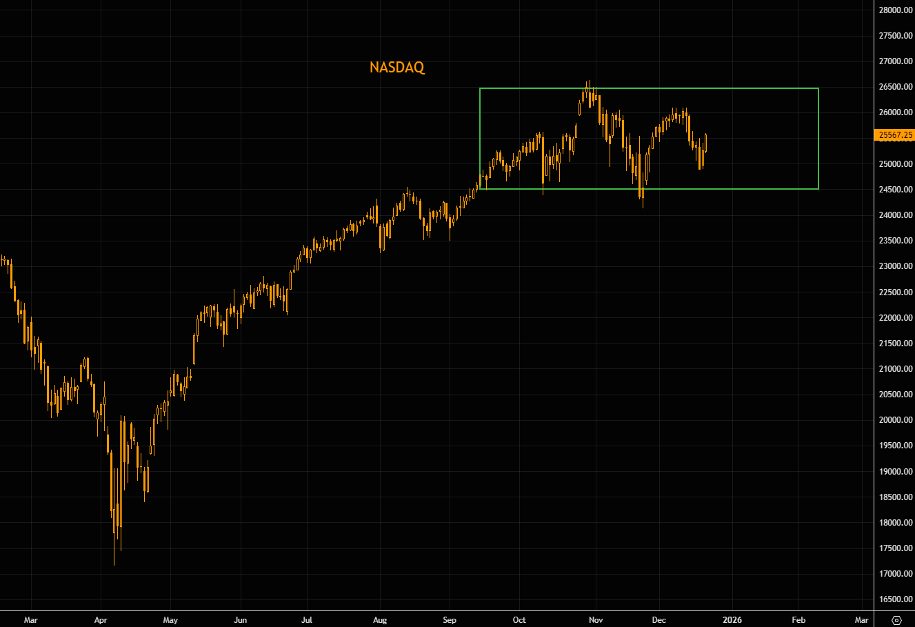 NASDAQ is in the middle of the range, trading at the same levels we traded at in late Nov, early Nov, late Oct, early Oct... you get the point.