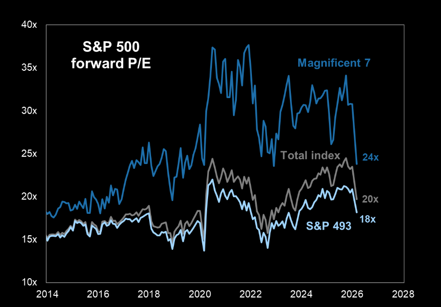 We have seen a big de-rating across the board over the past weeks, but the Mag7 one really stands out, from 31x to 24x since January.