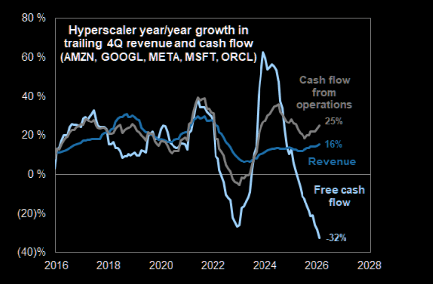 Hyperscaler cash flow, revenues and free cash flow is a tale of three stories. Investors seem to currently put more emphasis of the FCF part and does not seem to believe in a forceful turnaround here.