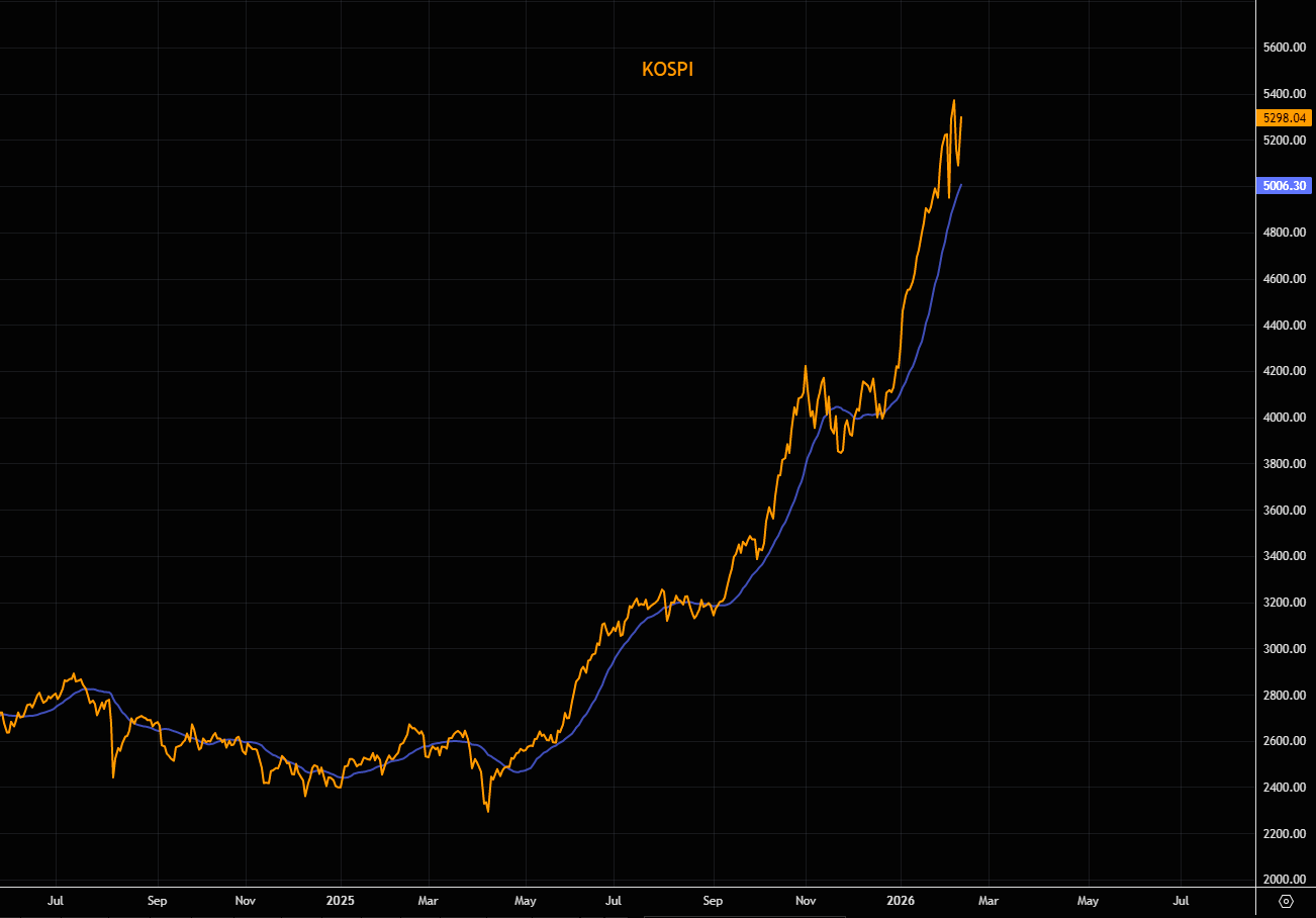Upside momentum in KOSPI continues to be extreme. The strategy of buying on any pullbacks down to the 21 day MA continues to be simple, but profitable.