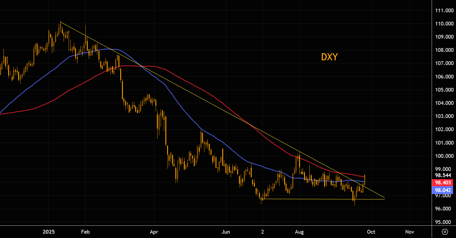 DXY breaking above the negative trend line, closing well above the 50 day... and attempting the 100 day. More on the crowded short dollar here.