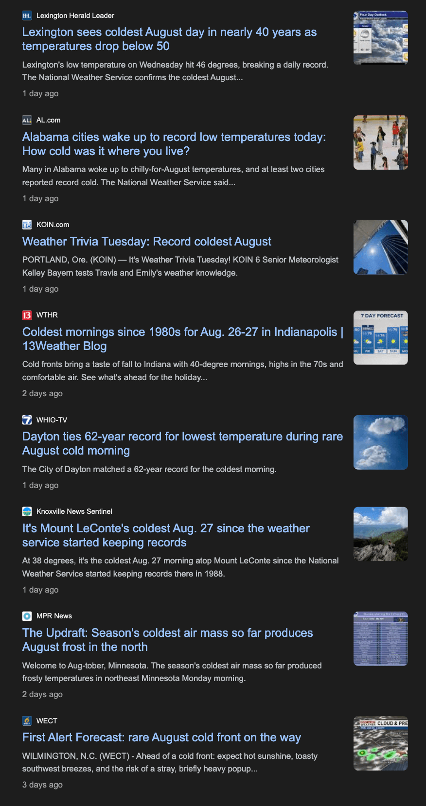 August 26: What Climate Crisis? Weather Channel Reports "Record-Breaking Cold" For August