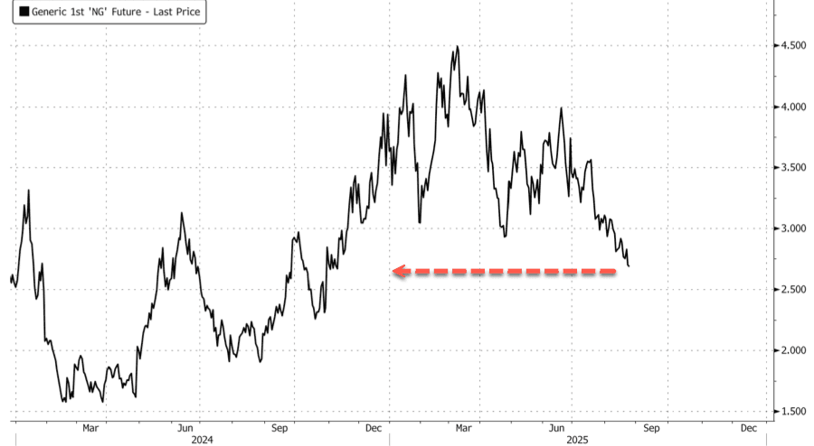 NatGas prices are falling because lower cooling demand means less power burn on grids.