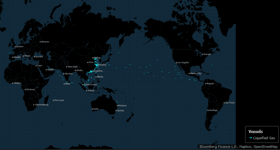 Bloomberg cited marine traffic data from Kpler, showing that no US LNG shipments are currently inbound or about to be inbound to China.