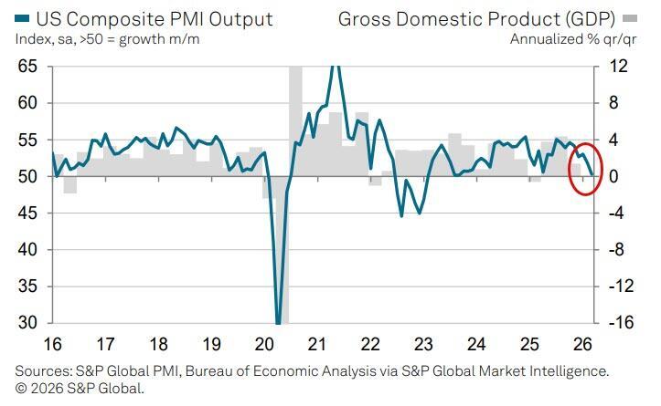 “The PMI survey data show the US economy buckling under the strain of rising prices and intensifying uncertainty, as the war in the Middle East exacerbates existing concerns regarding other policy decisions in recent months, notably with respect to tariffs," said Chris Williamson, Chief Business Economist at S&P Global Market Intelligence