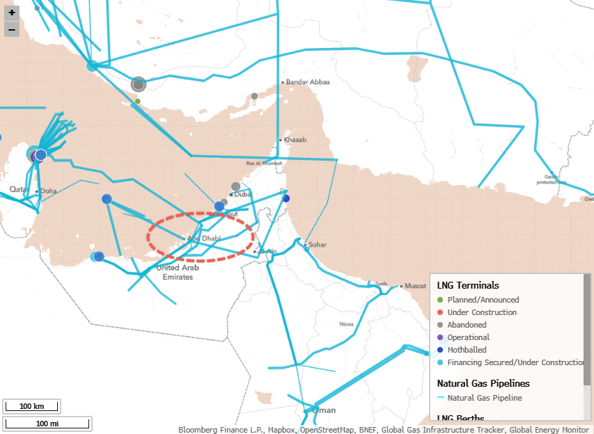 Habshan is at the core of the process by which raw natural gas from Abu Dhabi’s upstream energy assets is cleaned, treated, and split into usable products for domestic use. The facility produces gas for domestic use, along with NGLs, condensate, and sulfur. It's also the starting point of ADNOC's crude pipeline to Fujairah, the world's second-largest bunkering hub and a critical energy export terminal that bypasses the Hormuz chokepoint.